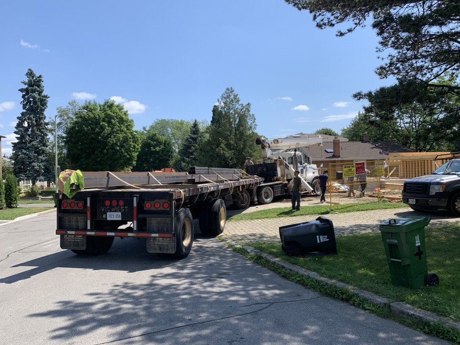 Our Live Haul & Hoist Solutions is a unique, one of a kind service. The most efficient way to go for live builds. We have the ability to haul materials and erect them on site, all in house. Roof trusses, engineered wood, timber frames, structural steel, prefabricated materials, and more!